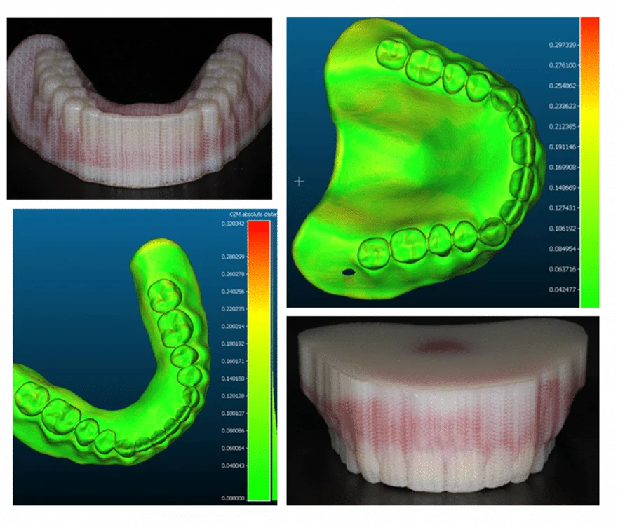 PolyJet 3D printing achieves 18.75 µm precision, ensuring an optimal fit from the first fitting. The process of manufacturing prostheses in a single 3D printing operation eliminates assembly steps that introduce variability in the traditional process, enhancing the precision of the prostheses.
